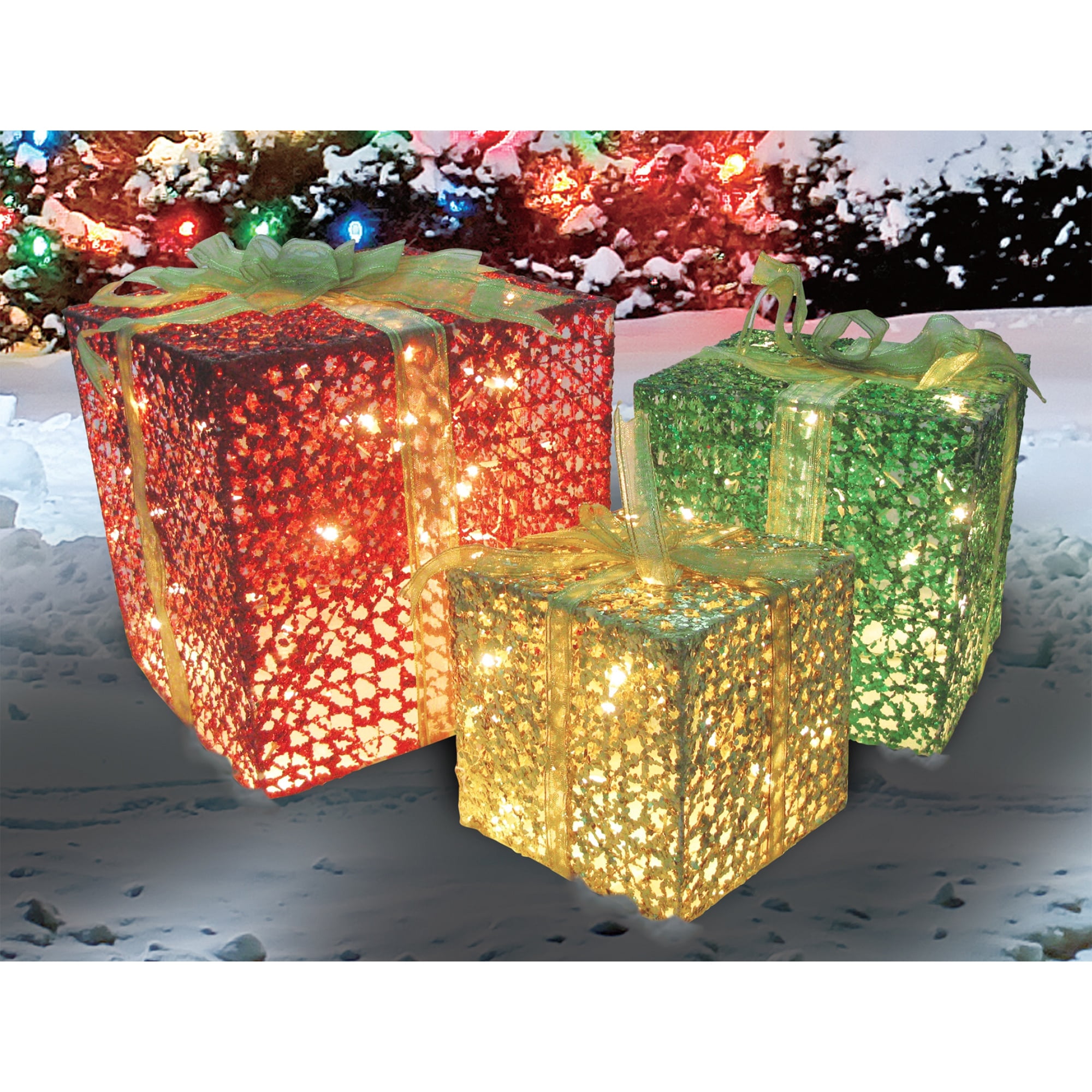3 Piece Glittering Gift Box Set Lighted Christmas Outdoor Decoration