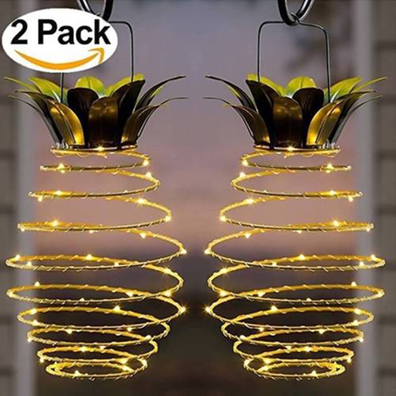 2x Solar Led Pineapple Light Outdoor Garden Lamp Wire Light Home