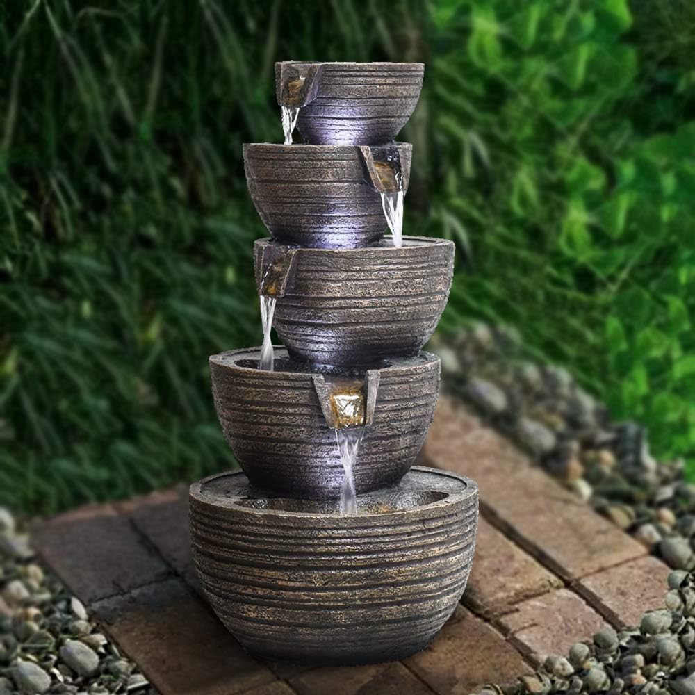Of the many ways to refresh your outdoor areas our selection of patio and garden water fountains is one of the easiest and most effective. January 29 2020. Glitzhome 3228 inh 4 tiers poly resin waterfall outdoor fountain with pump and led lights kd item.